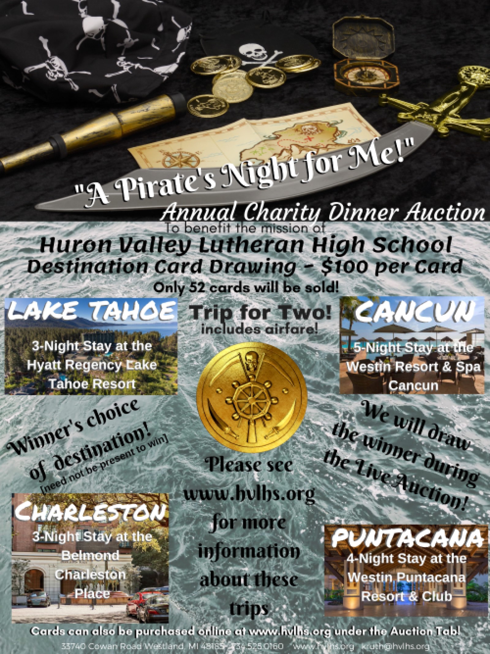 Includes $10.00 per ticket tax-deductible contribution to HVL, door prize entry & 10 Tin Can Auction Tickets & Heads & Tails entry.
